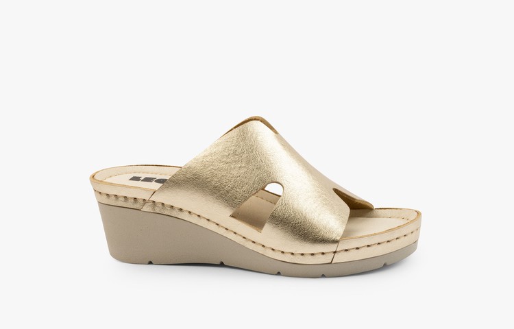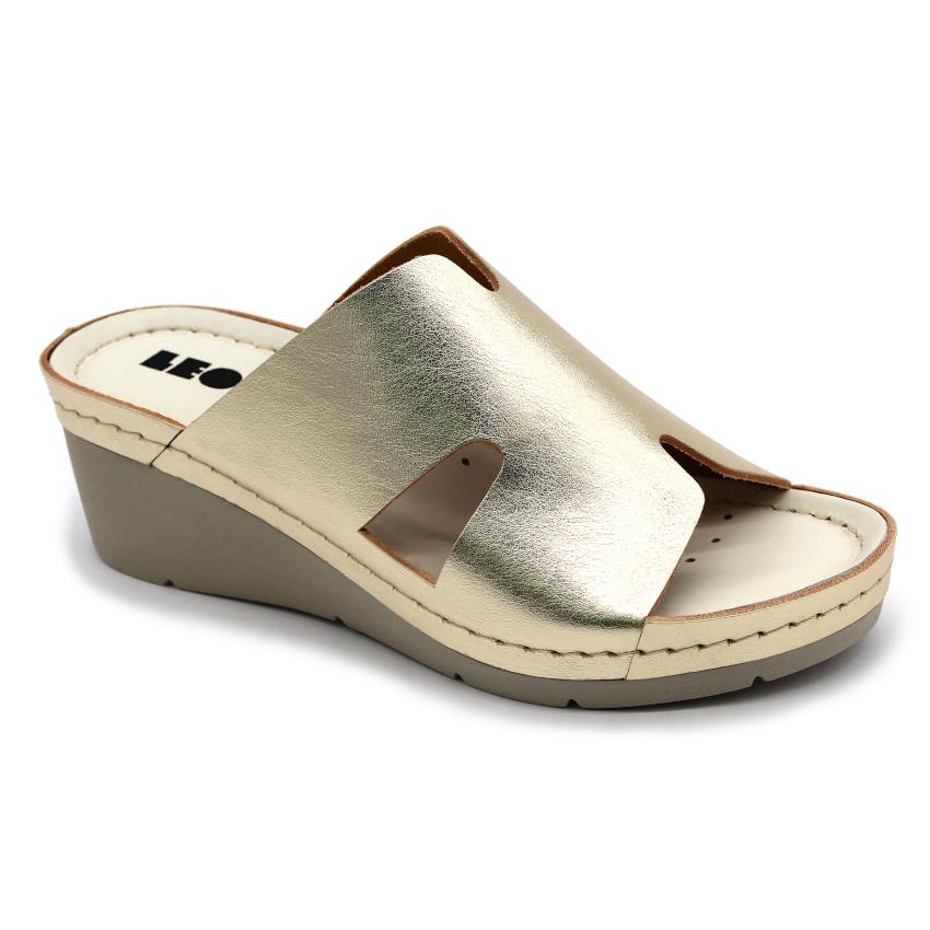 Dekorativní dámské kožené pantofle ve zlaté barvě představují ideální spojení elegance a maximálního pohodlí. Jsou navrženy pro ženy, které chtějí dopřát svým nohám komfort během celého dne, a zároveň si zachovat stylový letní vzhled.