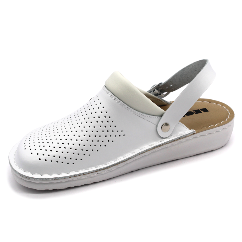 Certifikovaná zdravotní pracovní obuv EN ISO 20347:2012 je ideální volbou pro dlouhé pracovní směny, kde je kladen důraz na pohodlí, bezpečnost a hygienu. Obuv je vyrobena z kvalitní hladké kůže a má perforovaný svršek, který zajišťuje lepší prodyšnost chodidla.