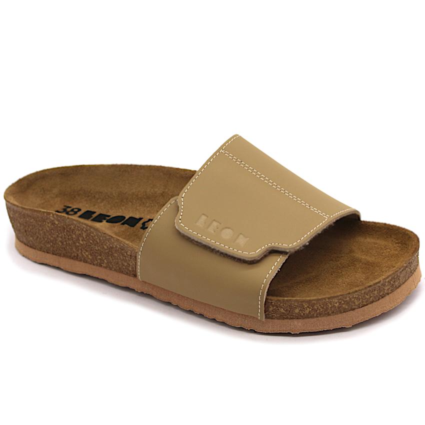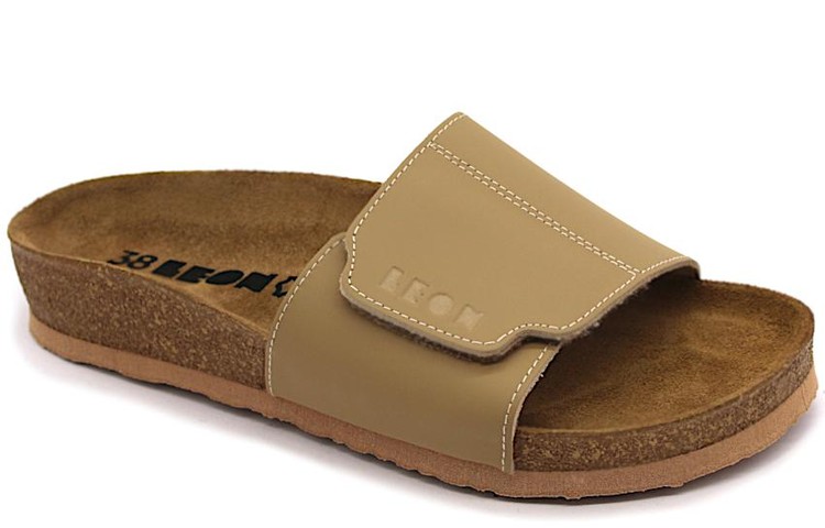 Unikátní ručně šitá zdravotní ortopedická dámská obuv se zvýšeným zdravotním účinkem. Moderní, kvalitní a pohodlné dámské otevřené zdravotní ortopedické boty pantofle vyrobené z pravé kůže, s nastavitelným páskem přes nárt, vylepšená a širší anatomicky tvarovaná podešev se vzhledem korku, s měkkou ortopedickou stélkou z masážního gelu a protiskluzovou podrážkou, která zajišťuje bezpečnost při chůzi na různých površích. Anatomicky tvarovaná stélka z měkkého masážního gelu zajišťuje pohodlnou a ergonomickou podporu nohy, je potažená kůží, což zvyšuje celkový komfort. Zajímavou vlastností těchto pantoflí je možnost nastavení šířky svrchního pásku pomocí suchého zipu. Díky tomu si zákazníci mohou přizpůsobit pantofle svým potřebám a získat optimální pohodlí a stabilitu při nošení. Pantofle jsou odolné a zároveň příjemné na nošení. Samozřejmostí je atraktivní design. Jsou vhodné pro každodenní použití doma nebo venku, pro volnočasové nošení, ale také jako domácí nebo pracovní obuv, ideální na letní procházky (i po hodinách chůze nemáte pocit unavených nohou).