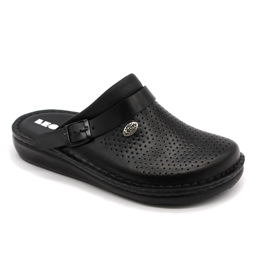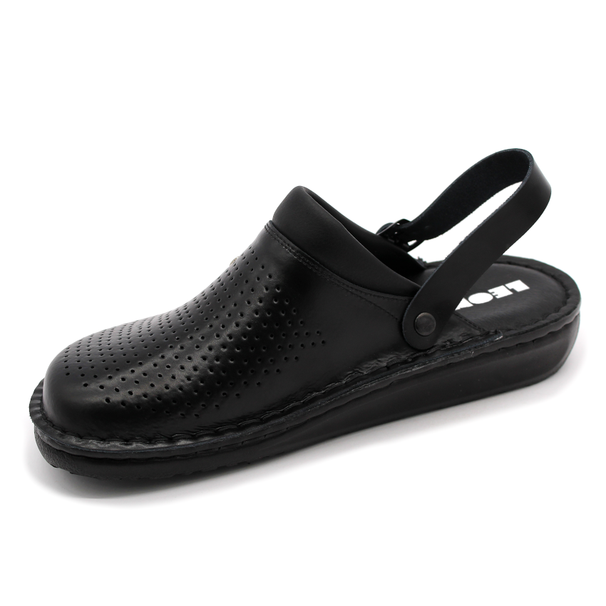 Díky otočnému pásku přes patu lze obuv nosit jako klasickou pracovní obuv, ale také jako pantofle nebo sandály. Celokožené provedení zajišťuje dlouhou životnost, snadnou údržbu a profesionální vzhled.
